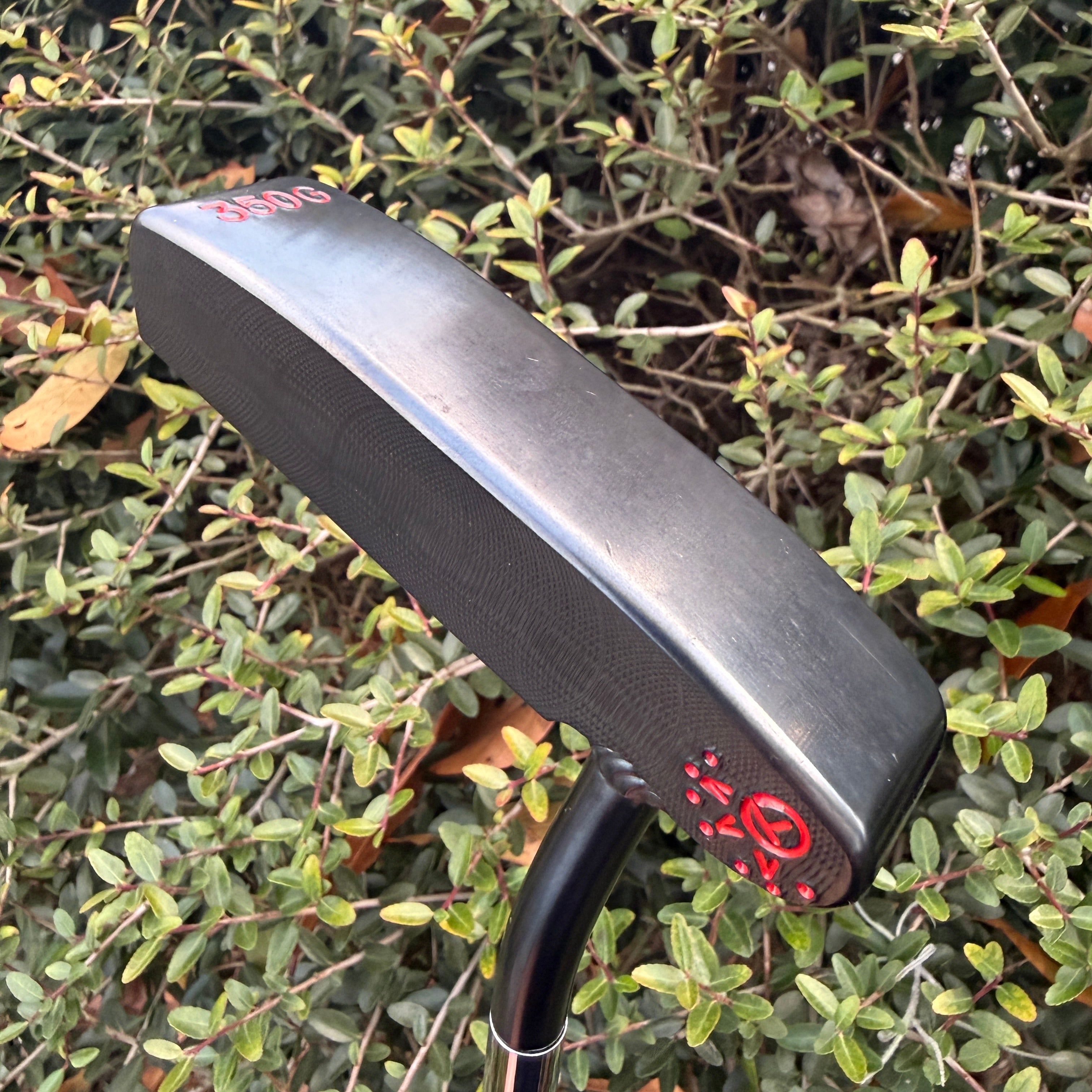 LH 009 Masterful at 35 inches and 350 g with COA, CT cover, CT grip and CT shaft band. CLEAN 9.5/10 condition with limited signs of use on the sole. This putter received a 35 inch shaft at the custom shop along with a top dot alignment at the custom shop. The COA was not updated after the top dot was added