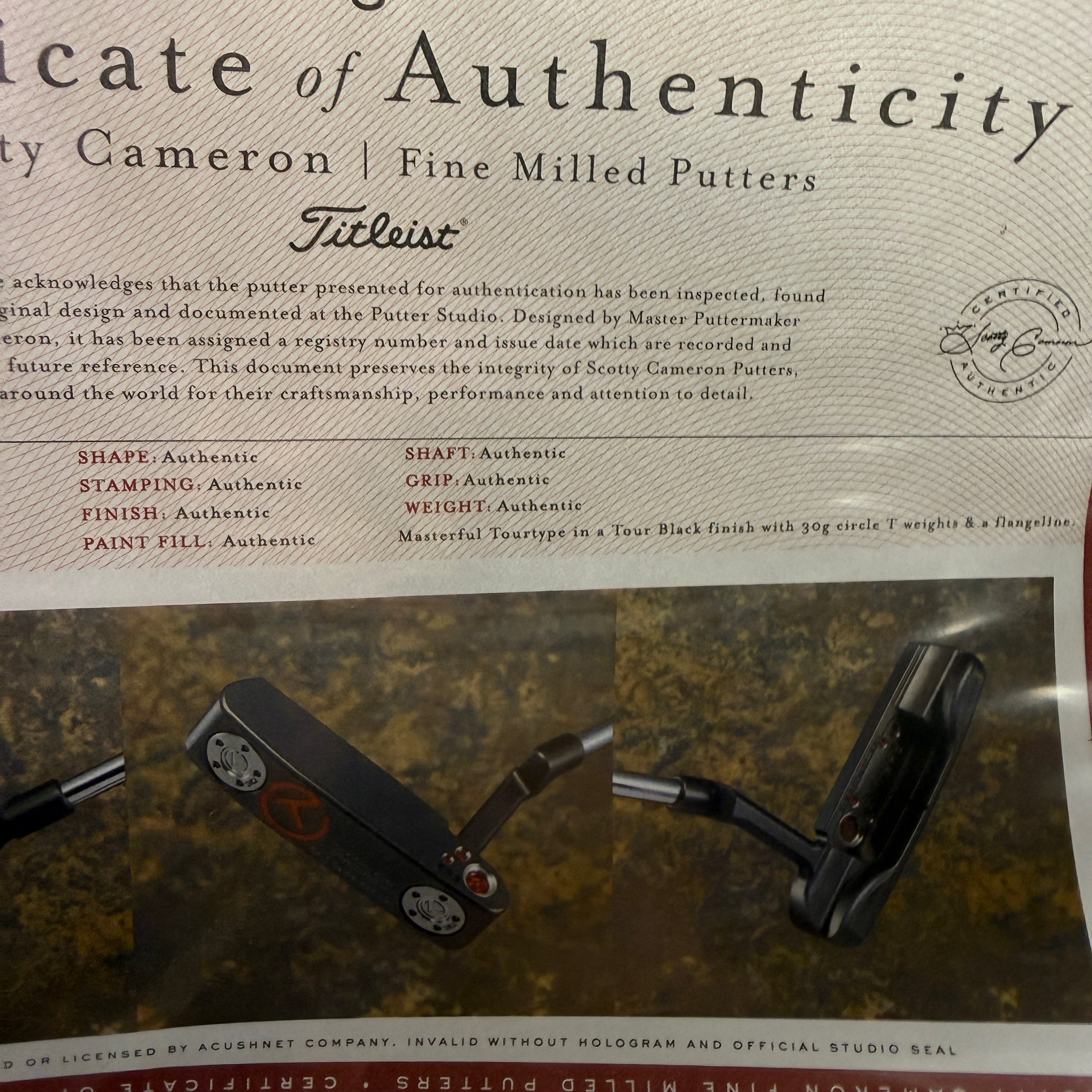 New RH Masterful tourtype in tour black at 34 inches with COA, CT cover, CT grip and dual CT shaft bands