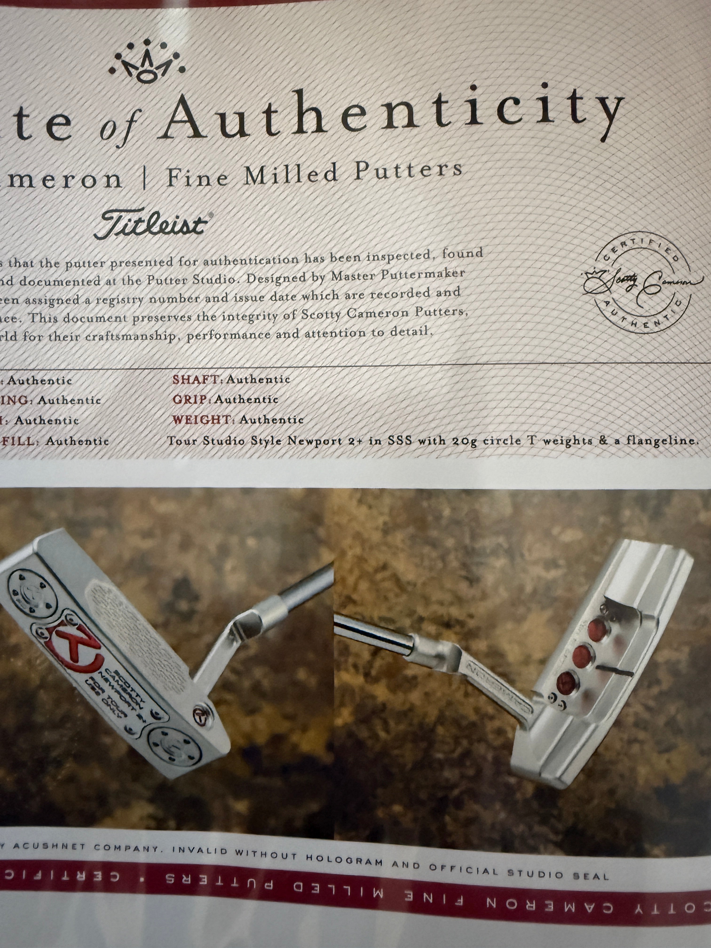 New RH Tour Newport 2+ SSS at 34 inches with COA, CT cover, CT grip and dual CT shaft bands